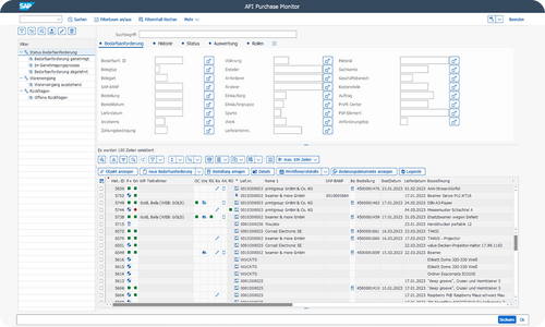 You'll receieve purchase requisitions in the Purchase Monitor in real time. Intuitive icons show the purchase requisition approval status, information on goods receipt or the inbound invoice, and much more.
