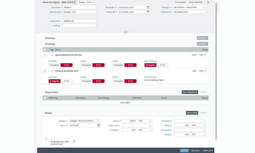 This intelligent workflow reliably and compliantly steers the travel expense process through verification, approval and release. Every eventuality can be optimally mapped in your processes and digitally controlled.